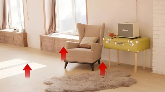 4)地面雜物過多,影響散熱。地暖熱量由下向上傳遞,若家中鋪有地暖或放置有無腿家具都會影響地暖熱量散發(fā)。所以建議盡量選用帶腿的家具和不要大面積鋪地毯。