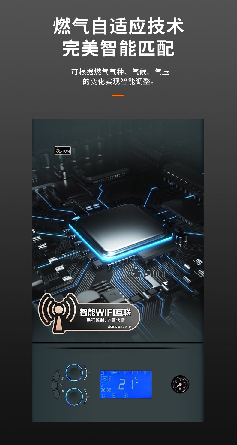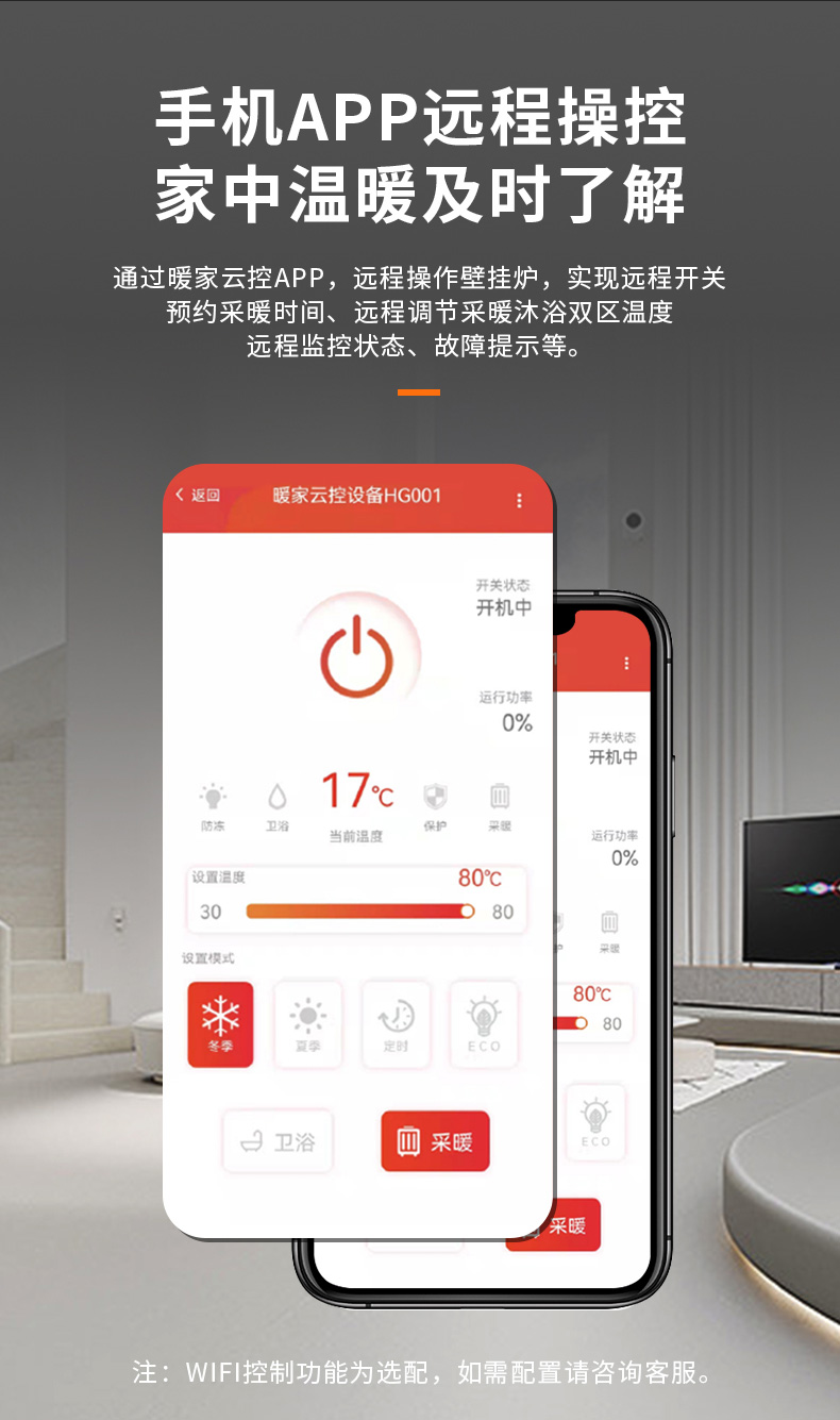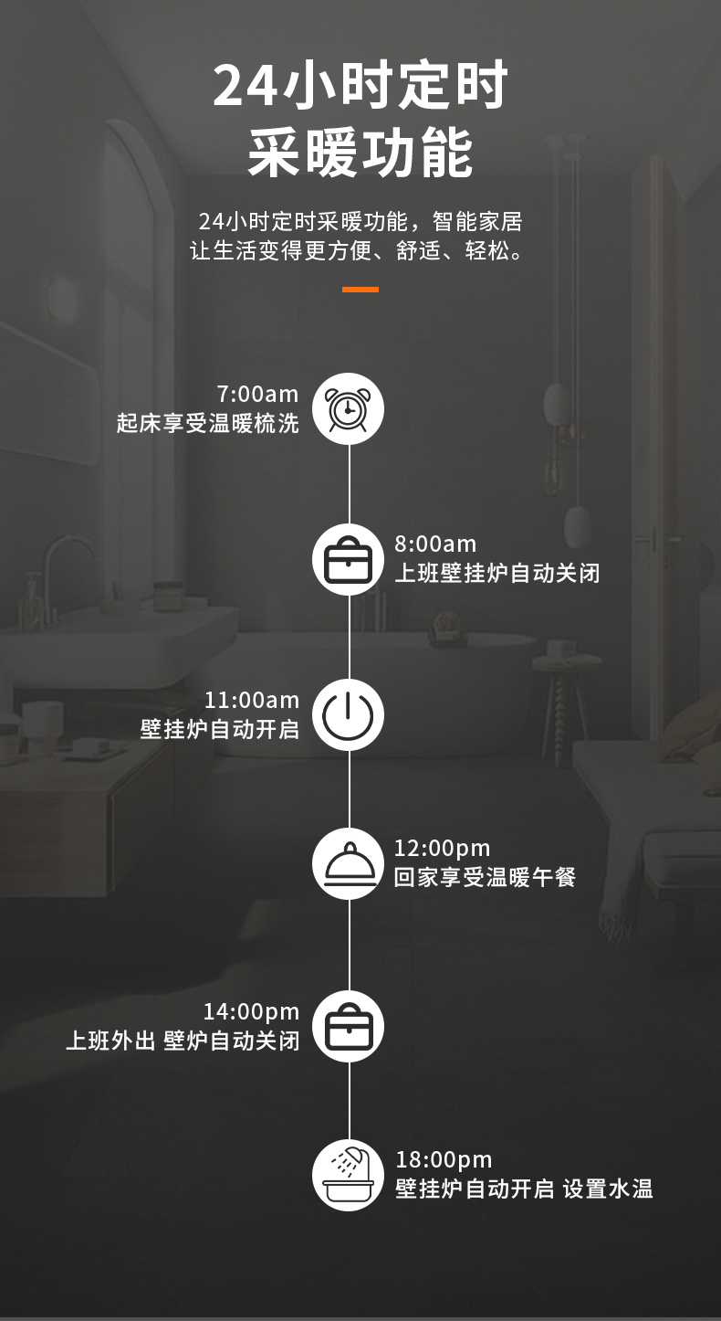 自定義定時采暖功能,可滿足不同場景和人群的個性化采暖,采暖季比常規(guī)模式更節(jié)省燃氣。