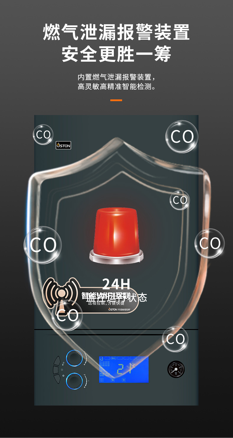 內(nèi)置燃氣泄漏報警裝置,秒級預警,安全加倍。