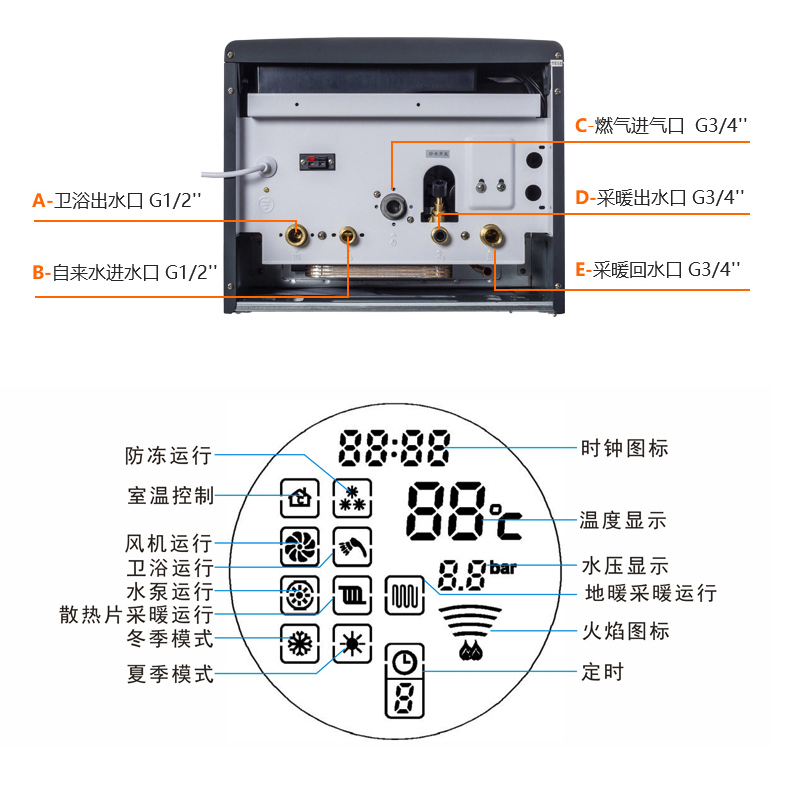 3.在可能結(jié)冰的情況下,必須保證壁掛爐的電源供應(yīng)和燃氣正常打開,以便機器的防凍功能起作用。若斷電或斷氣會導(dǎo)致壁掛爐防凍功能失效。